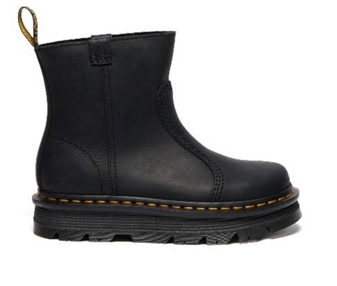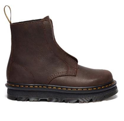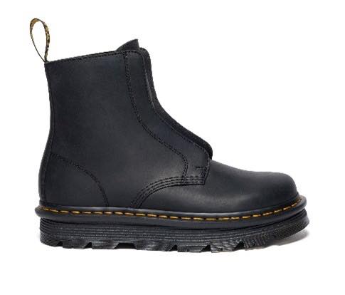 展開モデルは2型。ブランドを象徴する「1460ブーツ」にインスパイアされたZEBZAG LACELESSブーツは、シューレースのないスリッポン仕様ながら、レースアップブーツの美学を踏襲。柔らかなワイオミングレザーを用い、履き始めから使い込んだ風合いを演出する。もう一方のZEBZAG RIGGERブーツは、足首を低めにカットしたインダストリアルなシルエットが特徴で、デュアルプルタブやピューリタンステッチなどのディテールを備える。ブラック・ワイオミングレザーに加え、防水性を持つヌバック素材のバリエーションも展開される。