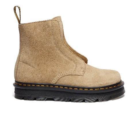 2025SSシーズンで登場した「ZEBZAGミュール」に続き、2025AWシーズンでは新たにレースレス仕様のブーツが誕生。履きやすさと軽快さ、着脱の容易さを兼ね備え、ドクターマーチンの未来を象徴する一足に仕上がった。ZEBZAGソールは軽量EVAミッドソールと耐久性のあるPVCトレッドを融合させたクッション構造を備え、現代のライフスタイルに寄り添う快適性と耐久性を両立している。