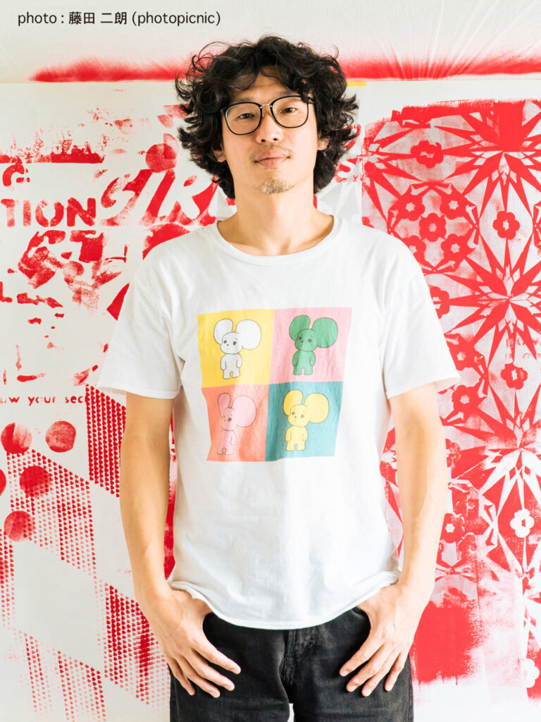 1974年京都生まれ。武蔵野美術大学視覚伝達デザイン学科卒業。ステンシルを用いたスプレー、ローラー、エアブラシなど多彩な手法で作品を制作。NIKE、TOYOTAなど企業とのコラボレーション、ホテルや店舗の壁画制作、メディア出演など活動は多岐にわたる。
