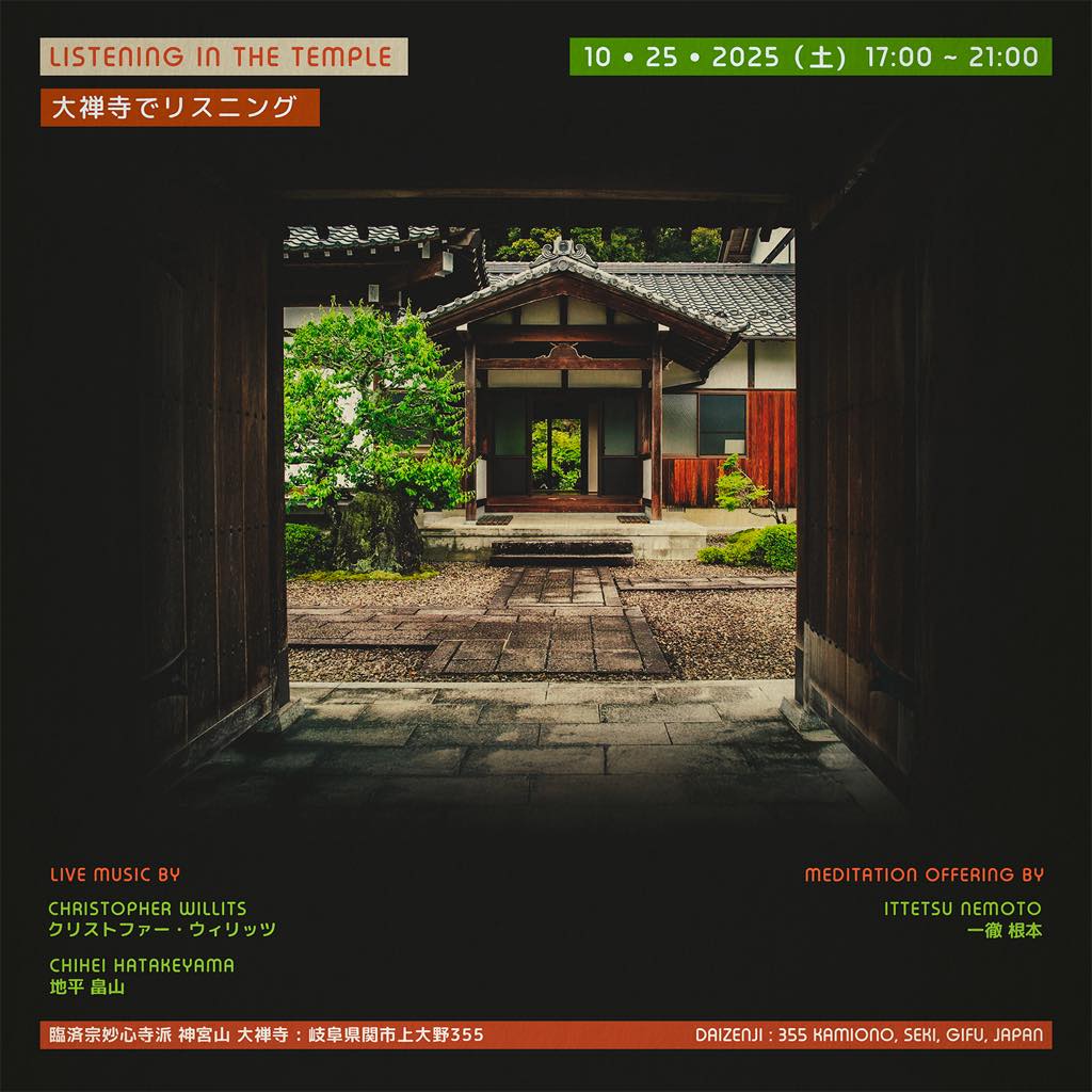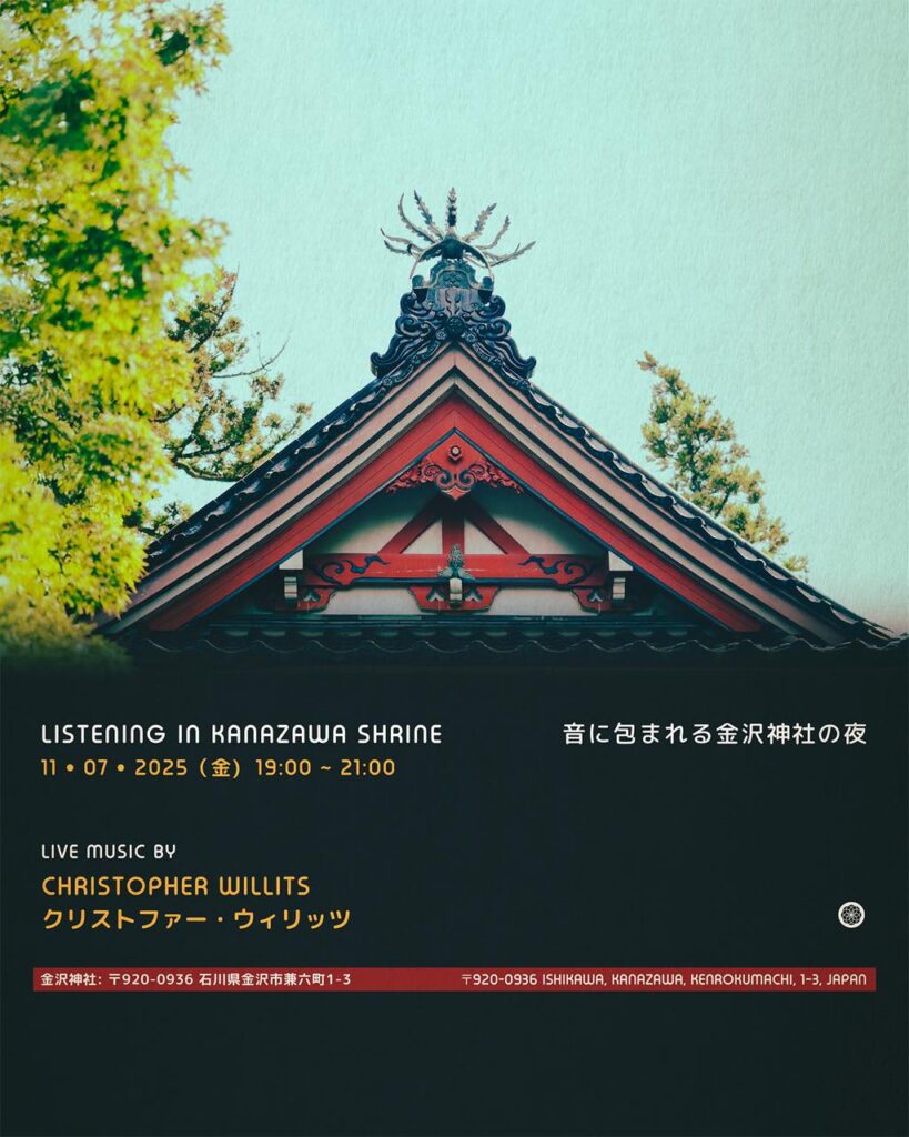 今回のツアーでは、日本アンビエント界の重鎮・Chihei Hatakeyamaとの共演を中心に、都市と自然、テクノロジーと精神性が交差する空間が各地で展開される。特に岐阜・大禅寺や金沢神社での公演では、四方を音が包み込むクアドラフォニック・イマーシブサウンドが用いられ、リスナーを深い瞑想状態へと導く「音の聖域」が創出される。
