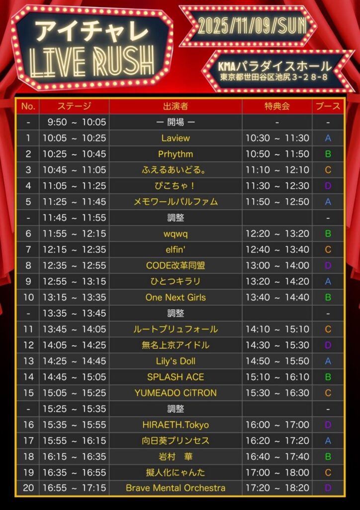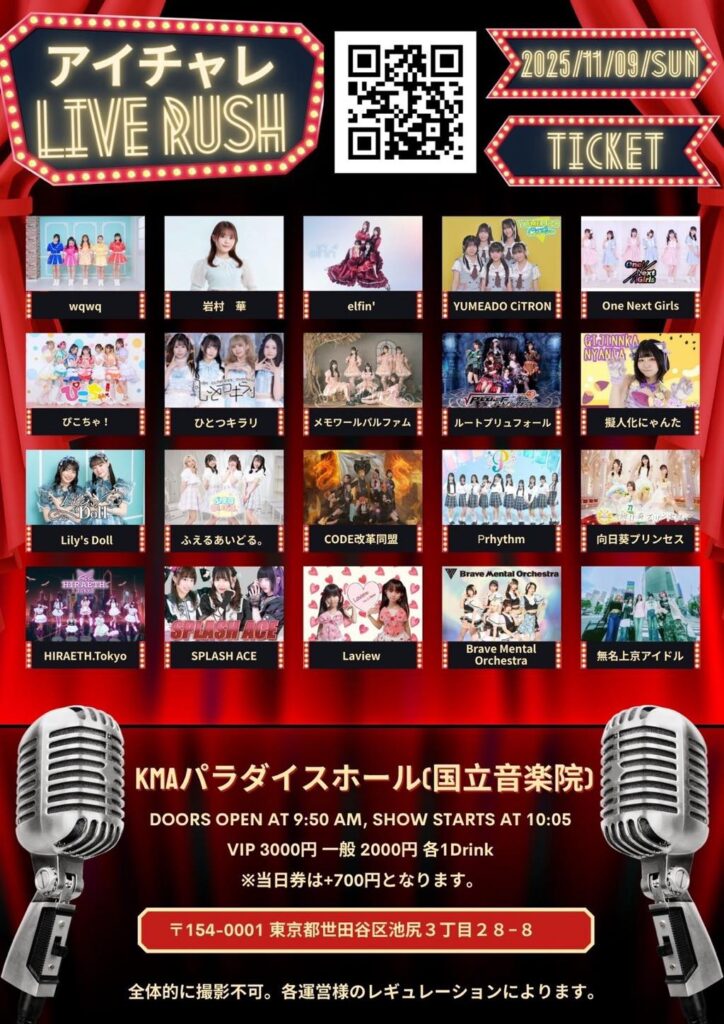 11月9日(日)、無名上京アイドルが出演「アイチャレ LIVE RUSH」