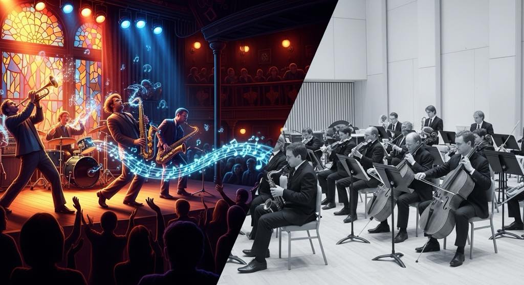 もしジャズが生まれていなければ、即興演奏という概念自体が存在しなかった可能性が高い。クラシック音楽のように、スコア通りに演奏されることが当然であり、演奏者の自由は限定的であったであろう。作曲家が書いた音符を厳密に再現することが美徳とされ、演奏家の個性は抑制される。