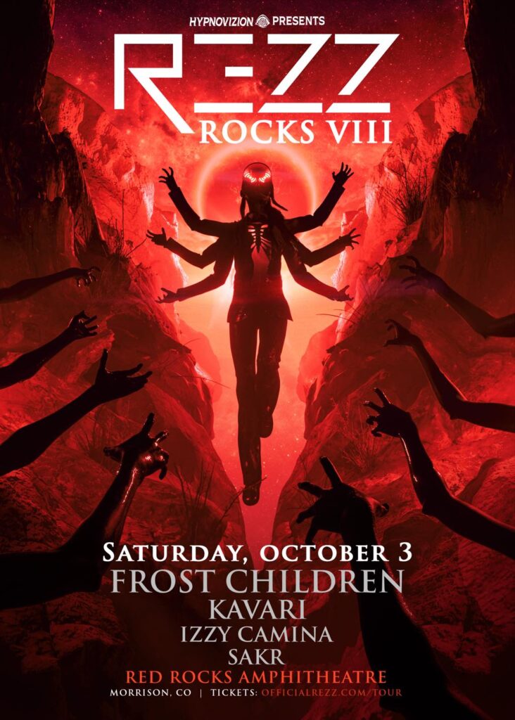 エレクトロニック・ミュージック界のヴィジョナリー、REZZが、毎年恒例のヘッドライン公演〈REZZ ROCKS〉の第8章を発表した。2026年10月3日、舞台はコロラド州モリソンの名門野外劇場Red Rocks Amphitheatre。一夜限りの特別公演として、Frost Children、KAVARI、Izzy Camina、Sakrをサポートに迎え、唯一無二の没入型ライブ体験が繰り広げられる。